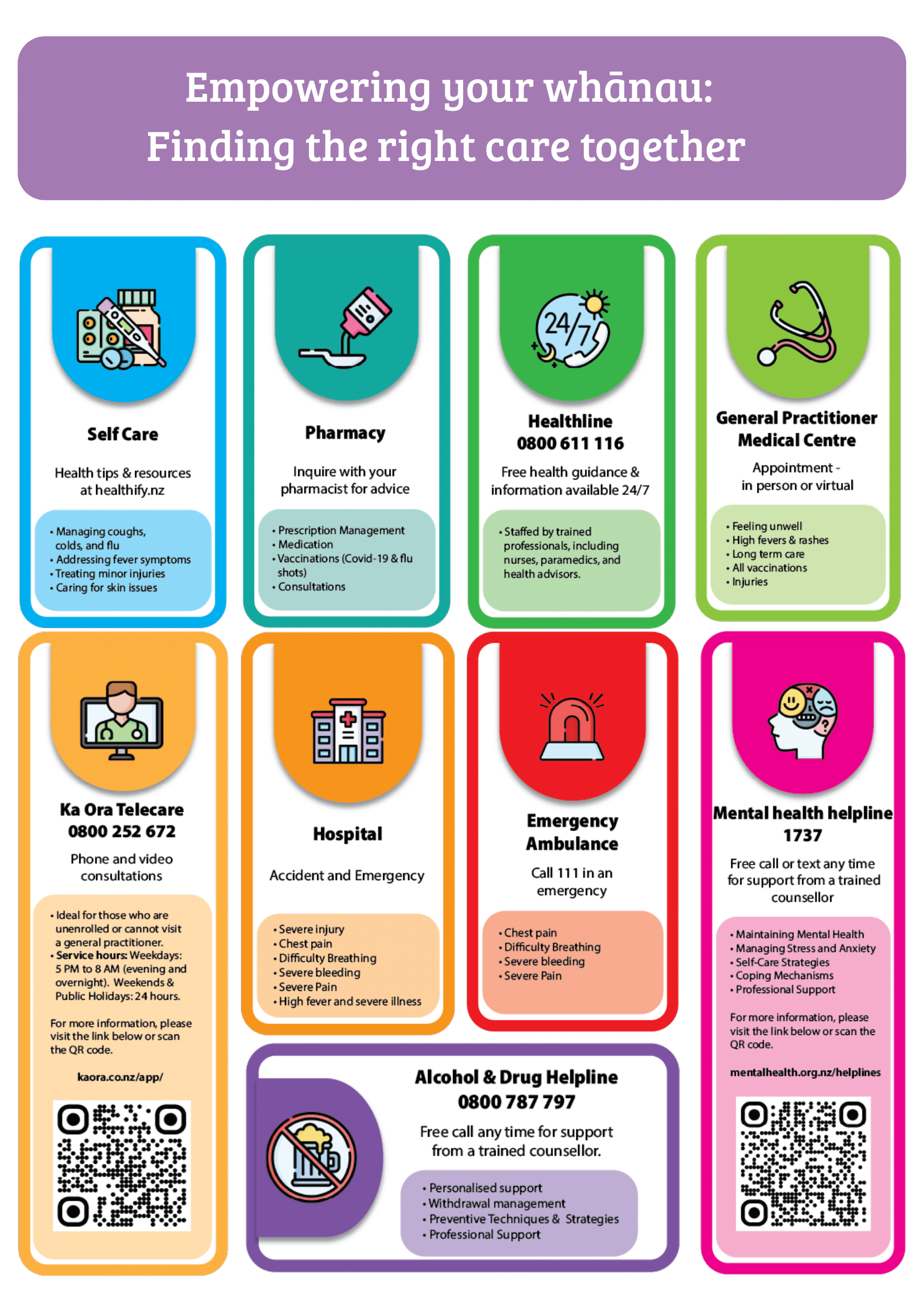 We have put this handy visual together to help you navigate the options available to you and your whānau, when you need it most.